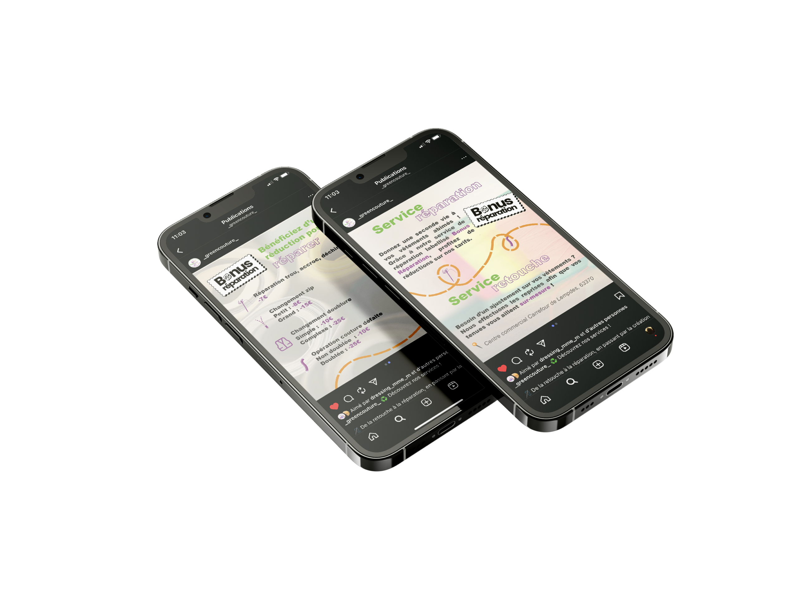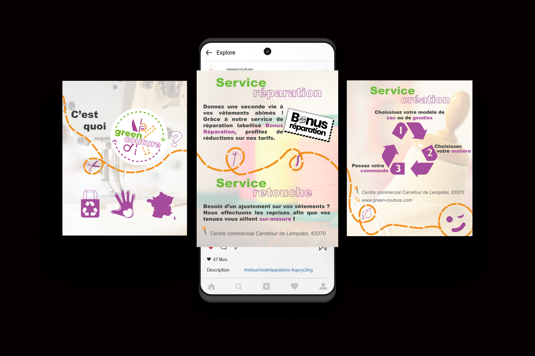 Le second post serait réservé à la présentation des différents services greencouture et le troisième un CTA pour inciter à se déplacer en boutique ou naviguer sur le site internet.